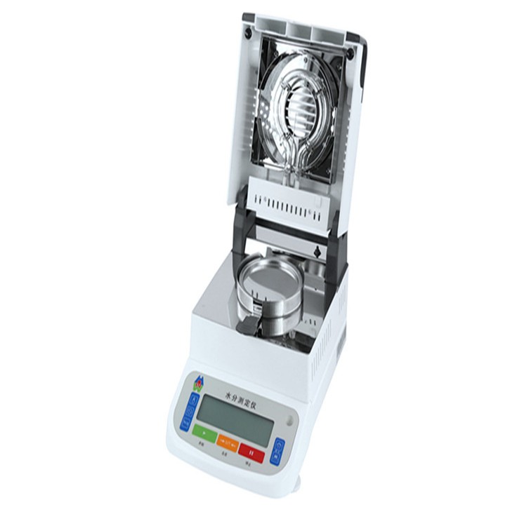 該水分測定儀基于經典的熱失重法(Loss on Drying, LOD)原理。在測量過程中,系統持續記錄樣品質量變化,水分百分比通過干燥前后樣品的質量差計算得出: